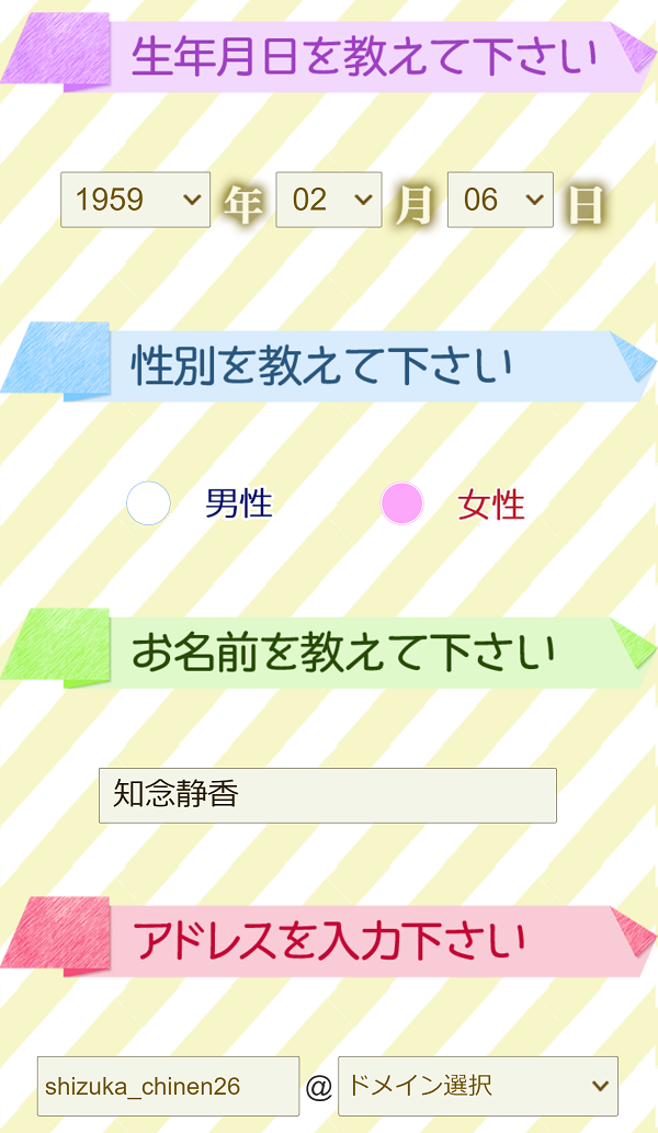 生年月日・性別・名前を送るだけです!