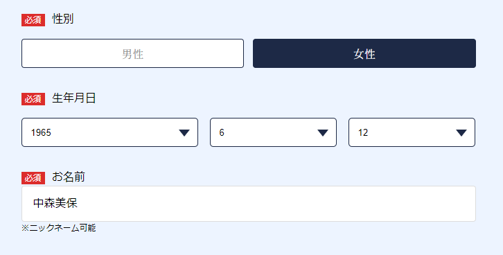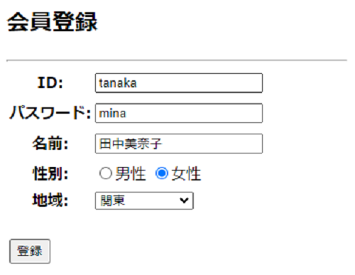 ID・パスワード・名前・性別・地域を送るだけです!
