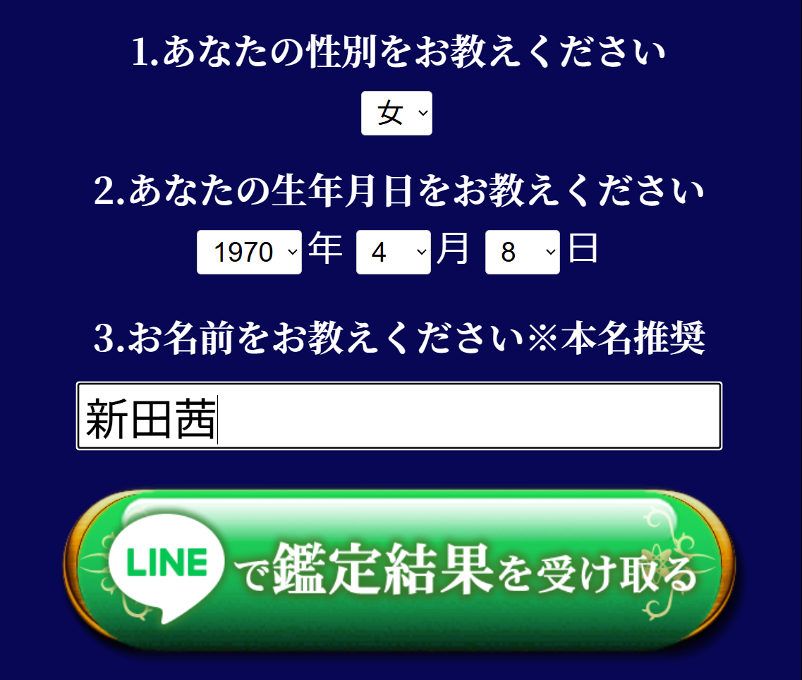 性別・生年月日・名前を送るだけです!