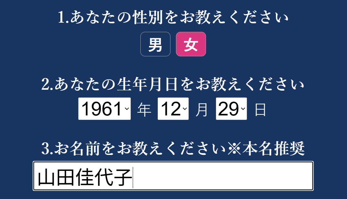 性別・生年月日・名前を送るだけです!